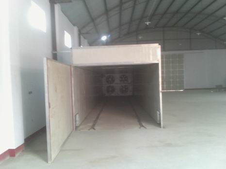 該干燥設(shè)備采用的是連續(xù)性烘干作業(yè),主要有干燥室、烘干車(chē)、料盤(pán)、供風(fēng)系統(tǒng)、熱風(fēng)爐、自動(dòng)電控系統(tǒng)等構(gòu)成。干燥室采用金屬保溫板或磚混結(jié)構(gòu),烘干盤(pán)采用金屬或其他材料制作。